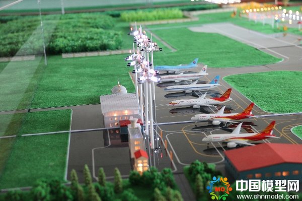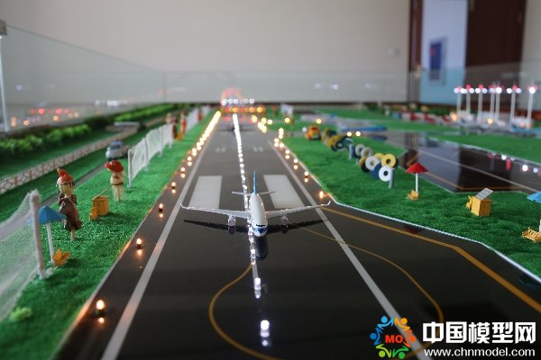 另外,該模型還注重表現(xiàn)了飛行區(qū)內(nèi)跑道、滑行道,機(jī)場(chǎng)區(qū)域內(nèi)的重要建筑物,機(jī)場(chǎng)周邊植被分布特點(diǎn),以及機(jī)場(chǎng)的跑道、滑行道、機(jī)坪的LED仿真燈光系統(tǒng)。